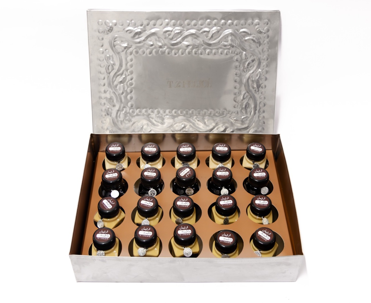 HomeGatheringGergean Mini Gathering Coffee BoxGergean Mini Gathering Coffee BoxKWD22.500 Set of 20 pcs mini bottled coffee of your choice: Tlafelice latte, Sea Salt, Cold brew, Italian Latte with personalised names in every bottle Gergean Mini Gathering Coffee Box quantity Buy now Reviews (0) Related products Birthday Cake – 25cm KWD23.000 Buy now Tiramisu Pistachio Small Box KWD7.500 Buy now Out of stock Mango Tiramisu KWD22.000 Read more