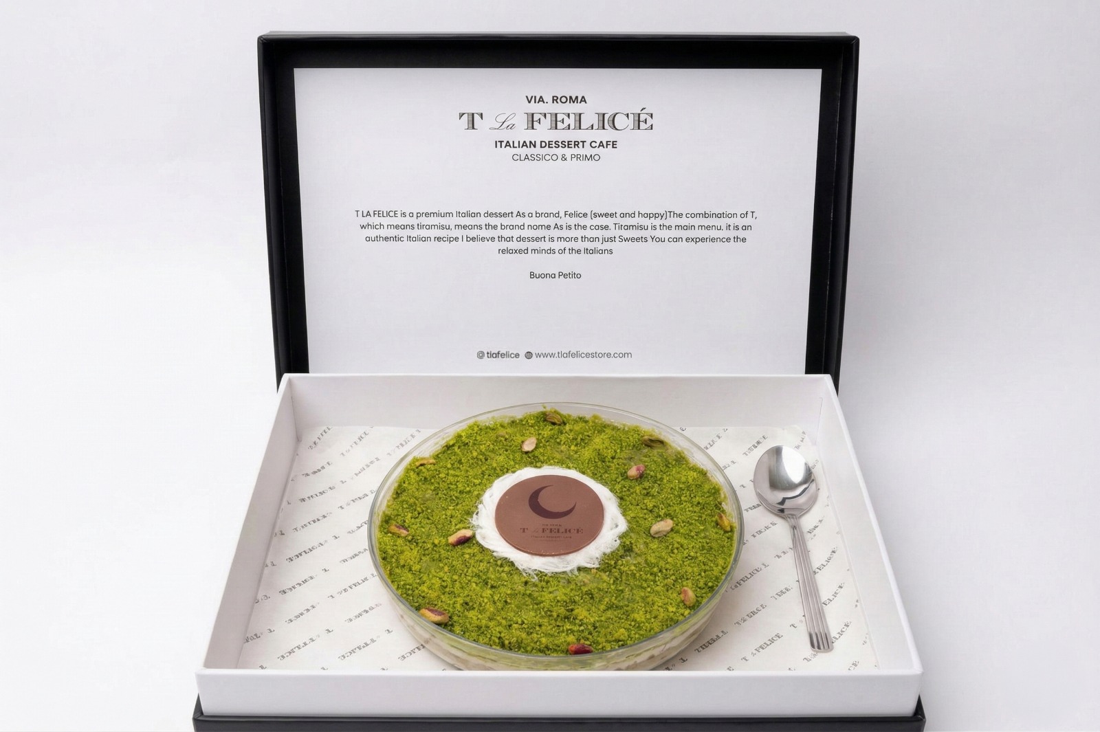 HomeRamadan 2026Pistachio TiramisuPistachio TiramisuKWD22.500 Pistachio Original tiramisu made from italian pistachio spread and arabian pistachio 25 cm Pistachio Tiramisu quantity Buy now Reviews (0) Related products Scatola Hot- Choose your flavors KWD18.000 Buy now Hot Chocolate Tiramisu KWD22.500 Buy now Mini gathering coffee box KWD22.500 Buy now